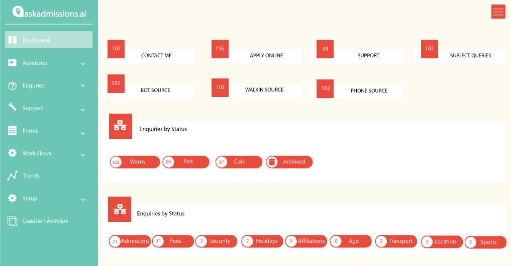Admissions enquiries accumulate all through the year but admission teams process them only in a year. Institutions may assign additional staff to admissions teams during high volume period, but cannot retain such strength all though the year. Askadmissions.ai automated the first level engagement of admission prospects 24 / 7/ 365 days... More